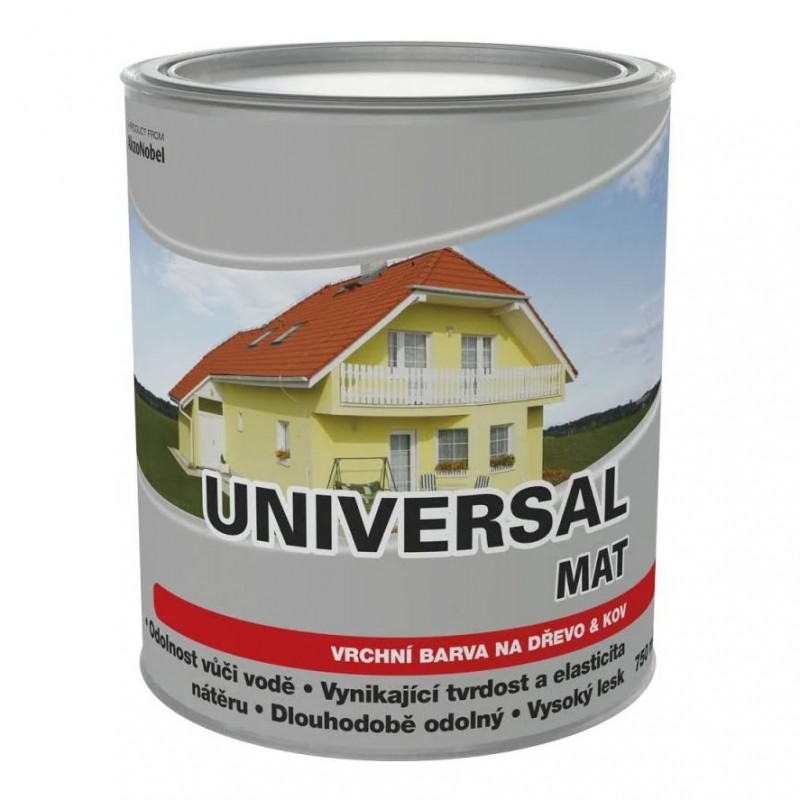 Univerzální vrchní rozpouštědlová alkydová barva na kov a dřevo.